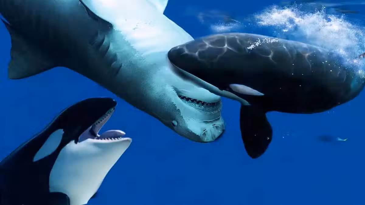即使長著血盆大口,大白鯊面對虎鯨也會很慫。在某些海域,大白鯊非常害怕虎鯨,怕到只要有虎鯨經過,它們就會成群結隊地逃跑。