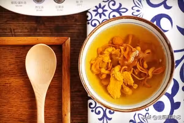 第二步:山藥和蓮藕快熟後再放入腐竹、猴頭菇、蟲草花及油、鹽,然後燉個十分鐘就好了。一款很鮮美的湯,除了油、鹽不需要加任何調料。