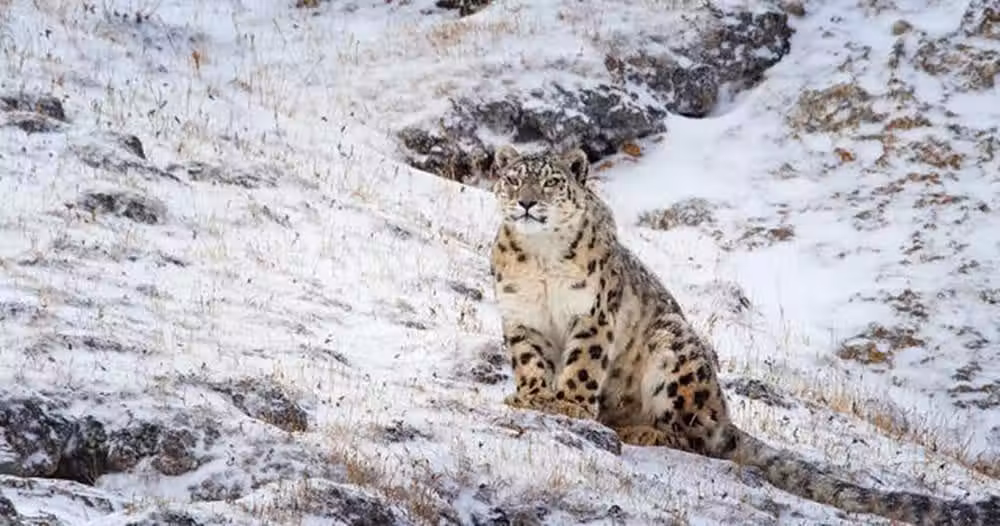 喜馬拉雅母雪豹耗時2天捕食,拖獵物回去喂幼崽,遭一群藏獒搶食