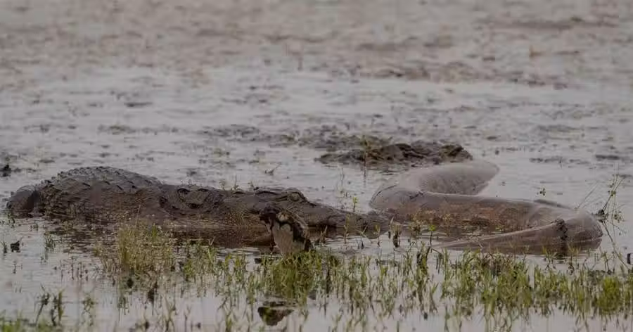 鱷魚與巨蟒的遭遇戰,蟒蛇剛剛進食完正處於疲憊期