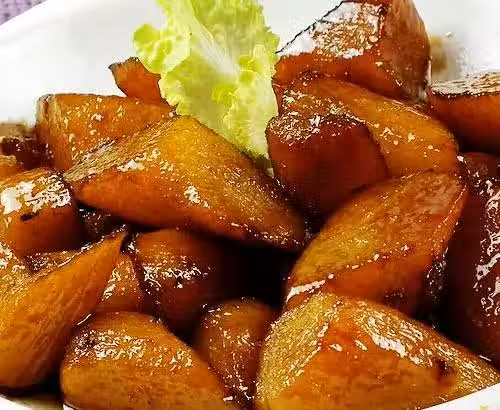3加入糖繼續炒勻。倒入可樂,沒過山藥。