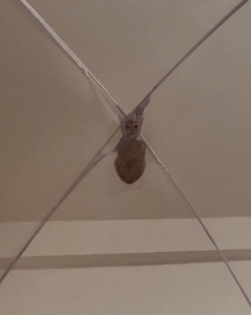 11月24號這天半夜,女子感覺到口渴就醒了,沒想到當她睜開眼睛,才發現有個黑壓壓的「不明物體」正壓在蚊賬的最頂上一動不動地盯著自己。