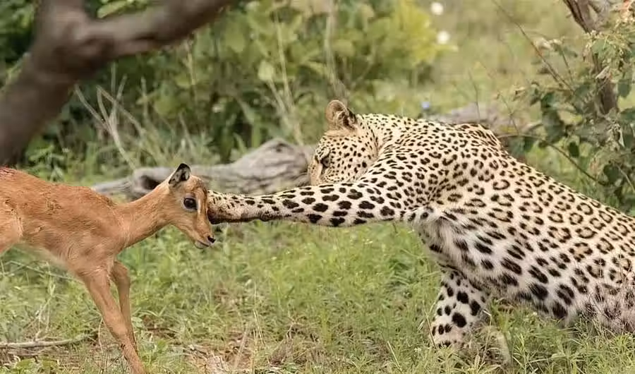 自然界缺少童話!豹子溫柔搭訕小羚羊,親密互動1小時,然後吃掉了它,這是在熱菜嗎