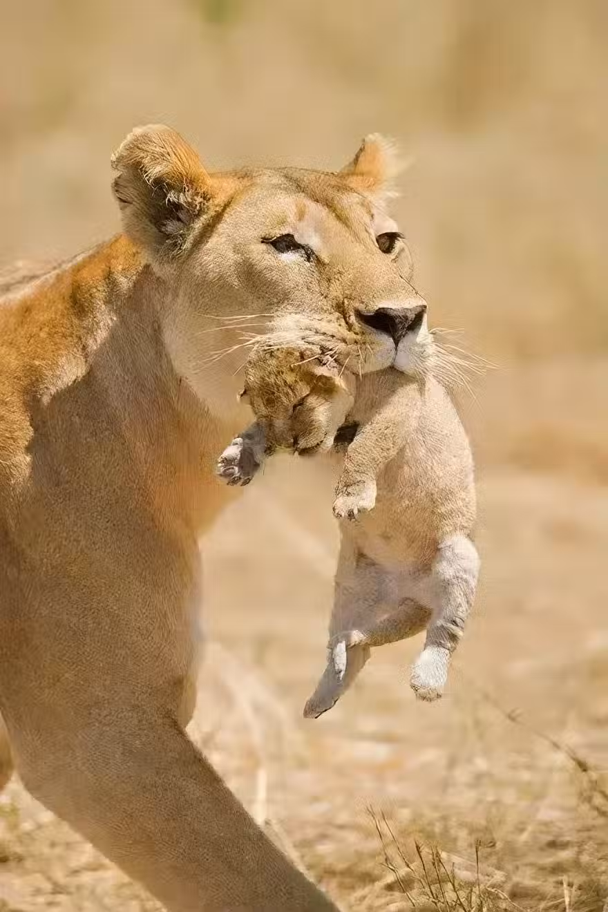 而且自然界危機四伏,誰知道什麼時候自家小崽子就被盯上了呢?所以動物媽媽直接將孩子叼起來帶著孩子走, 既不會拖慢轉移速度,增大在外暴露的風險,也不會讓幼崽面對危險。