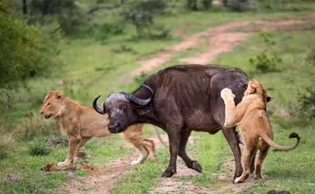 獅子是非洲大草原上的一種巨型捕食者,它們過著群居生活,靠群體的力量捕獵、抵抗其他動物的入侵。由於獅群中成員數量眾多,加上獅子的食量很大,所以它們經常要捕食大型的食草動物才能保證每一頭獅子都能吃飽,而體型龐大的非洲野牛就是獅子最喜歡的獵物之一。