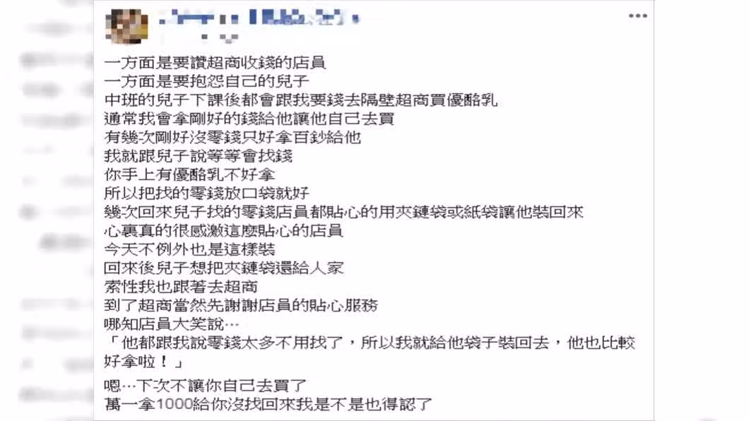 原PO事後也這場經歷分享在《爆怨公社》,網友紛紛笑噴大讚: 「完全就是當老闆的典範啊」、「有當霸氣總裁的fu」、「土豪啊」、「哈哈…不用找了!如果是我家小孩,我一定跟他說,明天你不用吃零食了」、「你兒子一定是老司機」、「從小就懂得給小費」、「有錢人的架勢」、「一樣要用100的,然後要訓練」、「小費哥4ni,哈」。