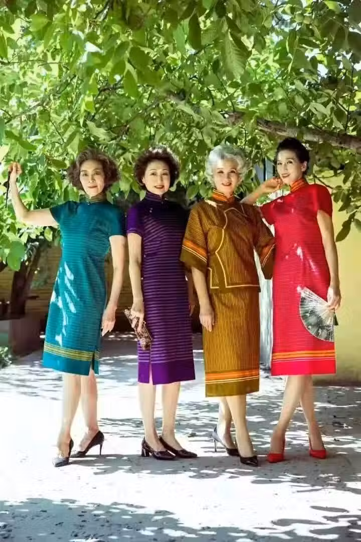 很多女生會常常拒絕靚麗的顏色,她們大多會選擇暗沉的深色系,或者黑白灰這些中性色彩。其實靚麗的顏色自有它的優點,不僅能點亮心情,也能襯托出上好的氣色。女人如花,又怎能少了如花般的色彩。奶奶們穿著紅紅綠綠的漂亮旗袍,站在綠意盎然的大樹下,又美又快樂。