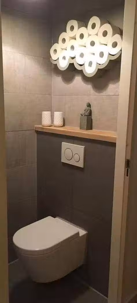 如果空間充足的話,在馬桶間裡面也可以設計一個小的儲物區,用來放置一些紙巾以及其他的用品,還可以在馬桶的上方設計一個單獨的洗手池,提升整個空間利用率,也減輕家務負擔。