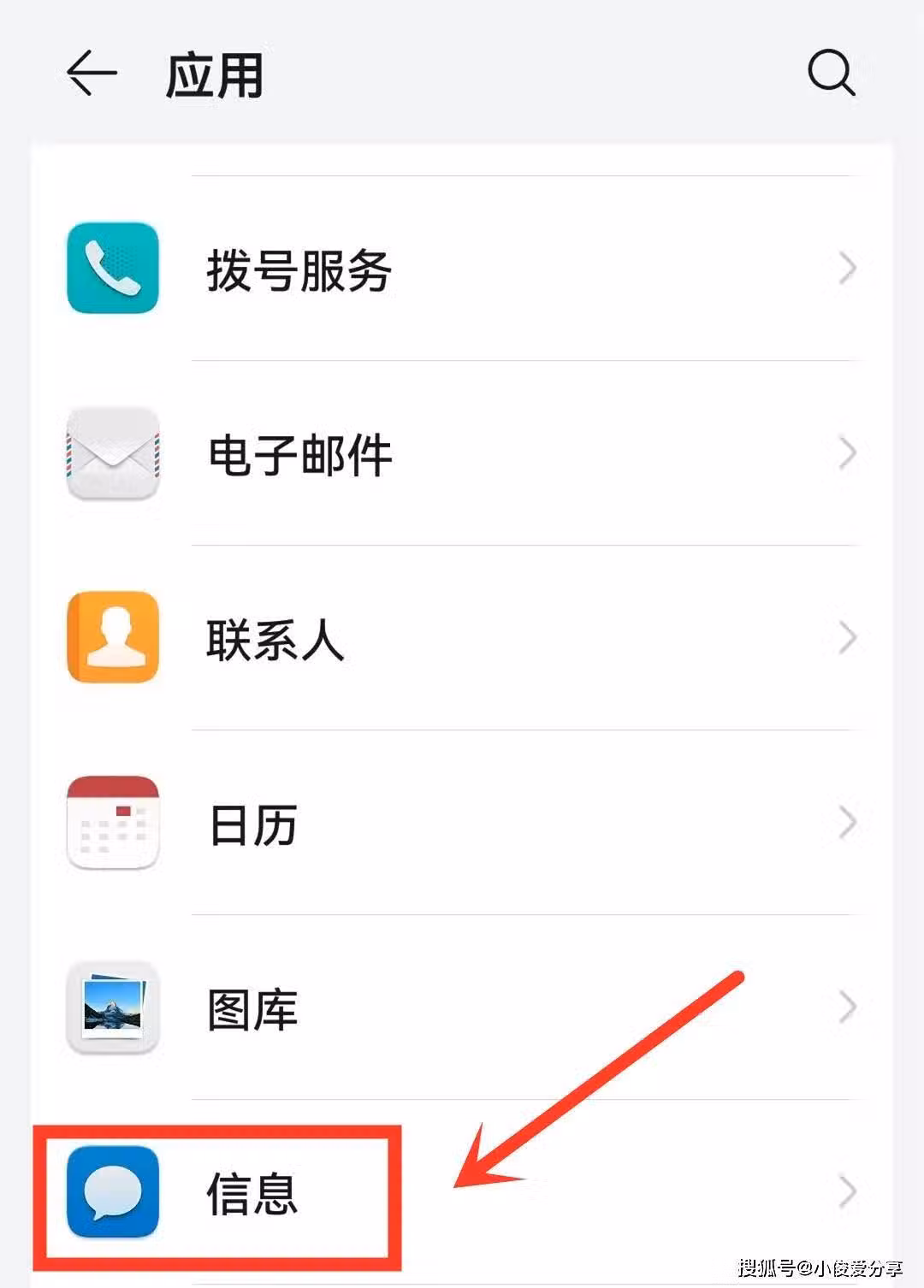 打開應用設置之後,我們往下滑找到信息的應用,然後我們點擊進去