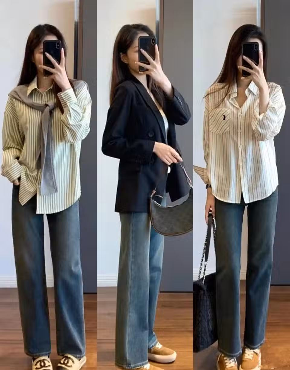 襯衫搭配牛仔褲也適合中年女性選擇,只不過有一點需要提醒大家一下,身材特別圓潤的女士不能選。