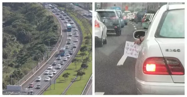 假日出遊塞在國5!愛睏駕駛撐不住「搖下車窗求救」 網細看「紙條上內容」笑歪:不幫沒人性…