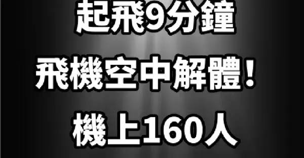 史上大型空難: 起飛9分鐘飛機空中解體,機上160人全數遇險!
