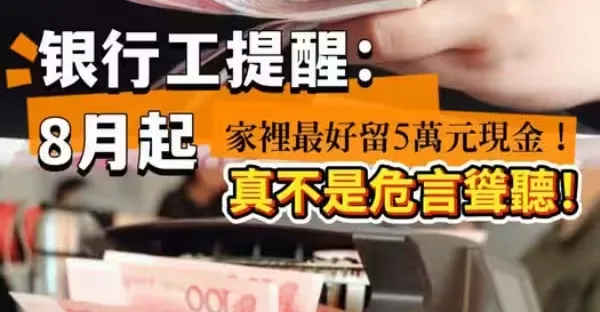 銀行員工提醒:8月起,家裡最好留5萬元現金!真不是危言聳聽!