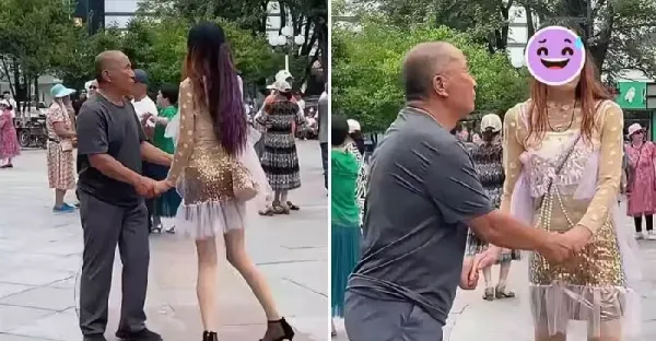 大爺和「靚女」廣場跳舞引注目!飄逸秀髪逆天長腿卻「毀在一個回眸上」,網驚:背影殺手,秒變正面「兇手」!