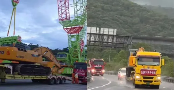 吊車大王「救災車隊」到了!開10小時挺進花蓮,最新畫面曝光