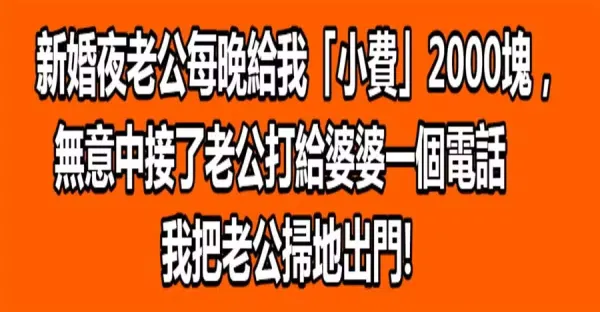 新婚夜老公每晚給我「小費」2000塊,無意中接了老公打給婆婆一個電話...我把老公掃地出門
