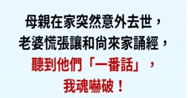 母親在家突然意外去世,老婆慌張讓和尚來家誦經,聽到他們「一番話」,我魂嚇破!
