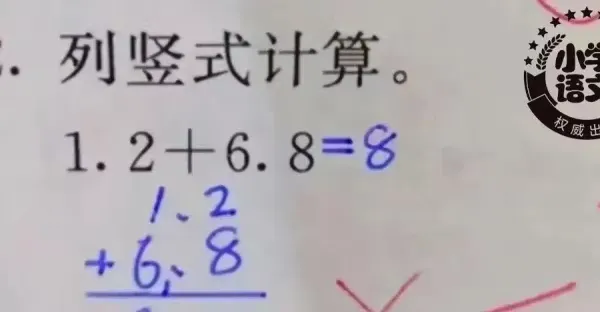 「1.2+6.8=8」 竟被判錯?家長質問老師:哪錯了?最後卻反被打臉......