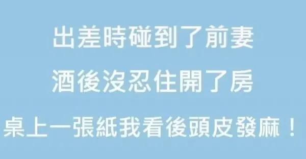 出差時碰到了前妻, 酒後沒忍住開了房,隔天桌上有一張紙,我看了以後頭皮發麻