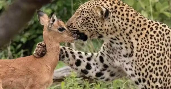 自然界缺少童話!豹子溫柔搭訕小羚羊,親密互動1小時,然後吃掉了它,這是在熱菜嗎
