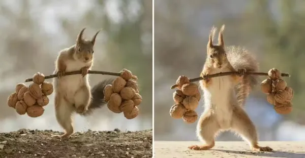 攝影師用誘餌讓松鼠「當模特」,拍下的照片令人捧腹,網友:最後一張穿幫了!