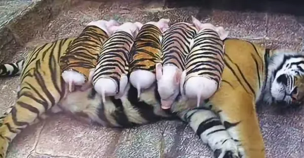 母老虎失去幼崽傷心絕食,飼養員找來「一窩豬崽」,沒過多久就後悔了
