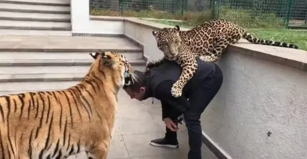 豹子背後偷襲飼養員,老虎上去就是一耳光:你把它吃了誰養我?