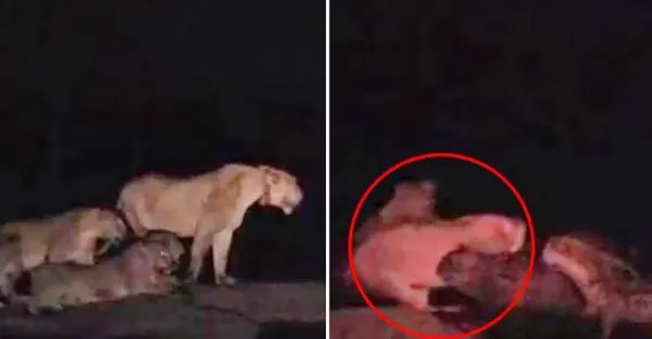 夜幕降臨母獅為護小獅子,隻身挑三鬣狗,無奈寡不敵眾淪為鬣狗宵夜!!