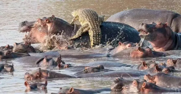 罕見的36張照片,水母吃魚,河馬戰鱷魚,花豹秒殺野豬,猛禽鬥毆_獵物_角馬_大熊貓