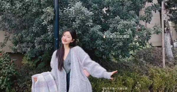 趙露思曬元宵節戶外隨拍 身披毛衣化身活潑小灰兔