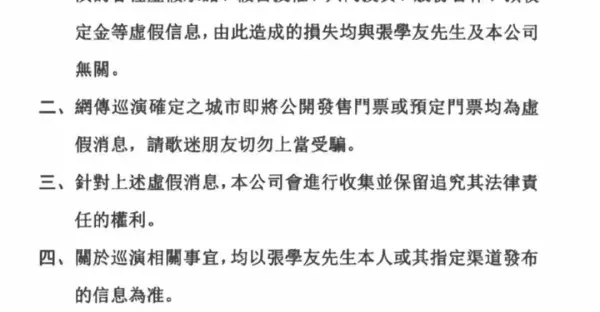 張學友發布消息稱內地巡演新聞不實 歌迷切勿購票上當_媒體_世界_演出商