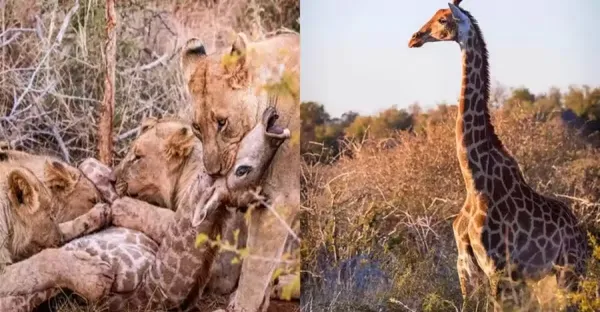 五小隻獅子戲弄長頸鹿寶寶,鹿媽媽親眼目睹卻無能為力,悲痛流淚畫面令人心酸
