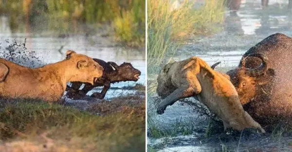 18歲老母獅「不服老 打頭陣」狩獵小牛,慘被母野牛反擊,雖然收穫了小牛晚餐,老母獅卻再沒力氣吃了