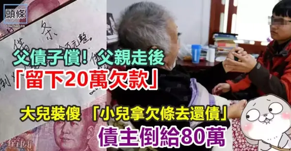 父債子償!父親走後「留下20萬欠款」 大兒裝傻 「小兒拿欠條去還債」 債主倒給80萬!