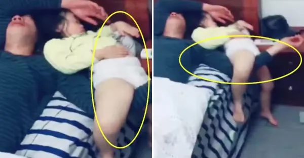 爸爸陪女兒睡覺,爺倆的睡姿讓媽媽有點哭笑不得,動作太高難度,網友:佩服