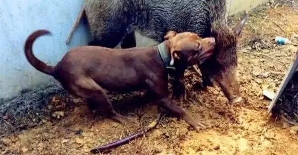 比特犬單挑野豬,不願搞事的野豬疲於防守,場面太激烈,鏡頭拍下全過程