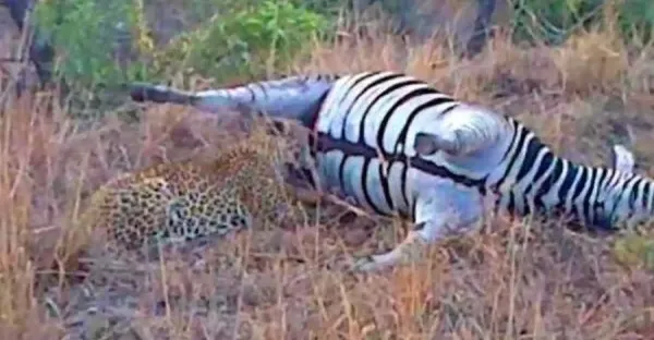 獵豹遇斑馬肚膨脹要撐開,不在意仍去吃,下秒被噴滿臉懷疑「豹生」!