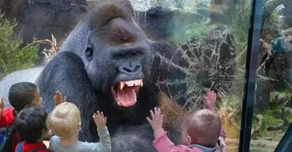 大猩猩被「熊孩子」激怒,一拳干碎鋼化玻璃,鏡頭記錄下全過程