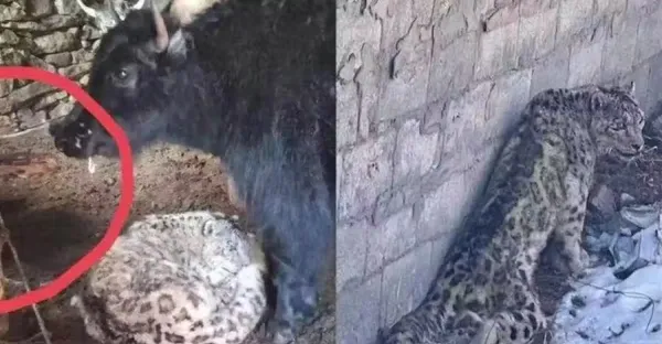 雪豹冒險捕食氂牛,卻被氂牛用角狠狠撞擊身體,結局太悲慘