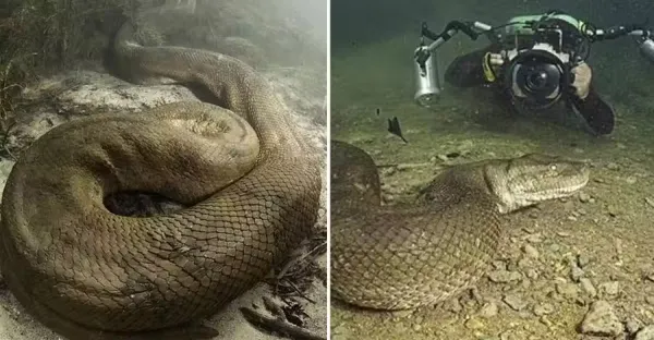 男子雨林探險水下拍到8米巨型森蚺,身材粗長眼睛放光,恐怖模樣足以把人嚇到腿軟