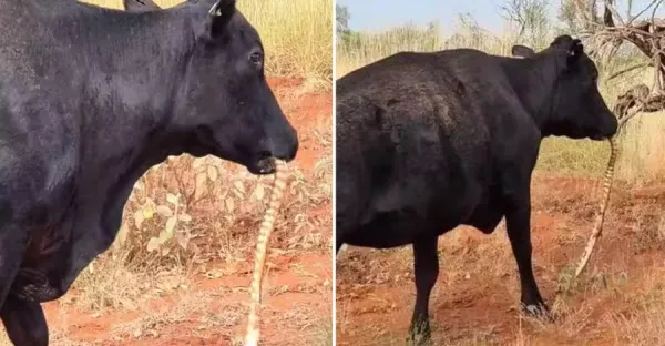澳洲母牛活吃蟒蛇,吃得蛇要懷疑人生了,是食物鏈要亂的先兆?