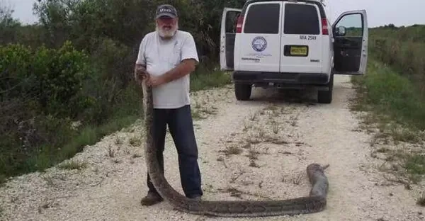 老頭開車路過發現異樣,以為蟒蛇是被車碾死,破開一看愣住了_男子_巨蟒_肚子