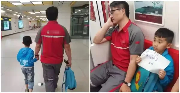 根本是來報恩的!快遞員爸爸「累到在捷運上睡著」 天使兒子「舉手寫紙條護航」乘客一看全暖哭