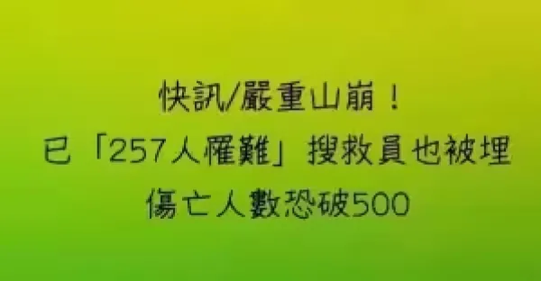 快訊/嚴重山崩!已「257人罹難」搜救員也被埋, 傷亡人數恐破500