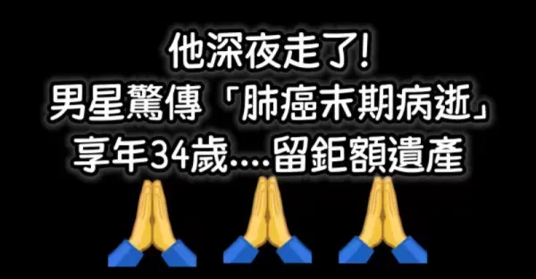 他深夜走了!男星驚傳「肺癌末期病逝」享年34歲....留鉅額遺產