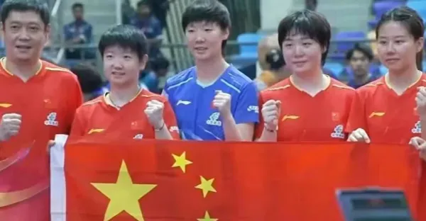 中國女乒3一0日本奪冠,三哥指揮拍出另類合影,王曼昱穿錯球衣