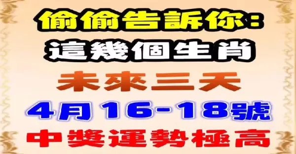 未來三天(4月16.17.18日)旺到不停,發到腿軟的生肖!