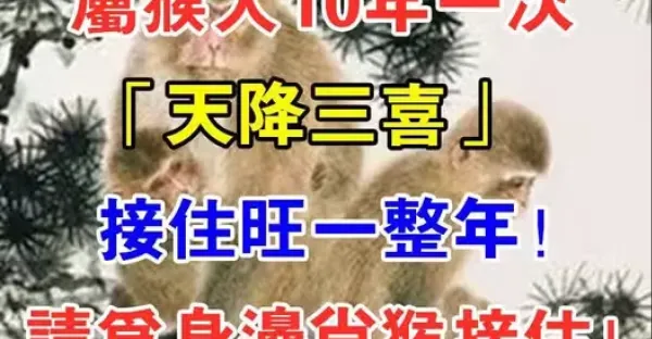 生肖猴10年一次「天降三囍」 接住旺整年!為身邊的屬猴人接住