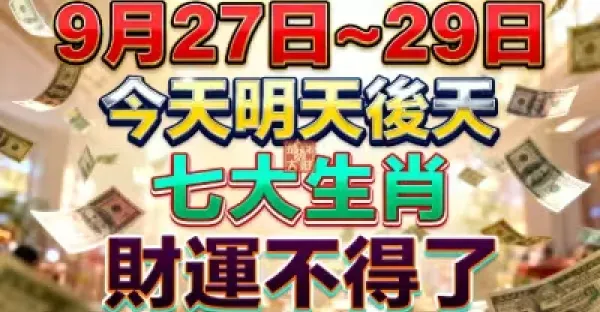 9月27日~29日,今天明天後天,七大生肖財運不得了~