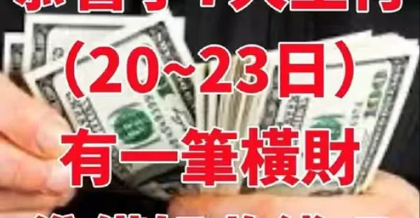 恭喜了7大生肖,在未來三天( 11月20~23日)即將有一筆橫財,準備好收錢吧